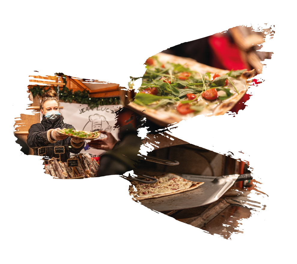 Unsere hausgemachten Flammkuchen bieten wir klassisch, mit Lachs und Lauch, mit Chili-Salami und als vegetarische Option mit Mozzarella, Tomate und Pesto an. Alle Zutaten sind frisch, werden vor Ort per Hand auf dem leckeren Flammkuchenboden angerichtet und traditionell im Steinofen gebacken. So läuft unseren Kunden bereits das Wasser im Mund zusammen, während sie darauf warten, dieses knusprige Erlebnis endlich in den Händen halten zu dürfen.