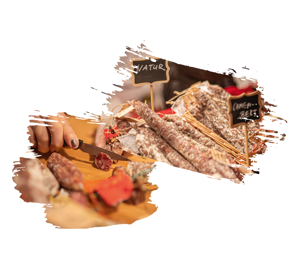 Unsere luftgetrockneten Gourmet-Salamis in handlichen 180 Gramm Portionen aus der französischen Auvergne werden liebevoll mit hochwertigen Produkten in Handarbeit hergestellt. Wir bieten bis zu 20 verschiedene Sorten Salami an. Zu den absoluten Delikatessen gehören dabei die Sorten: Knoblauch, Wildschwein, Hirsch, Ziegenkäse und Chili.
